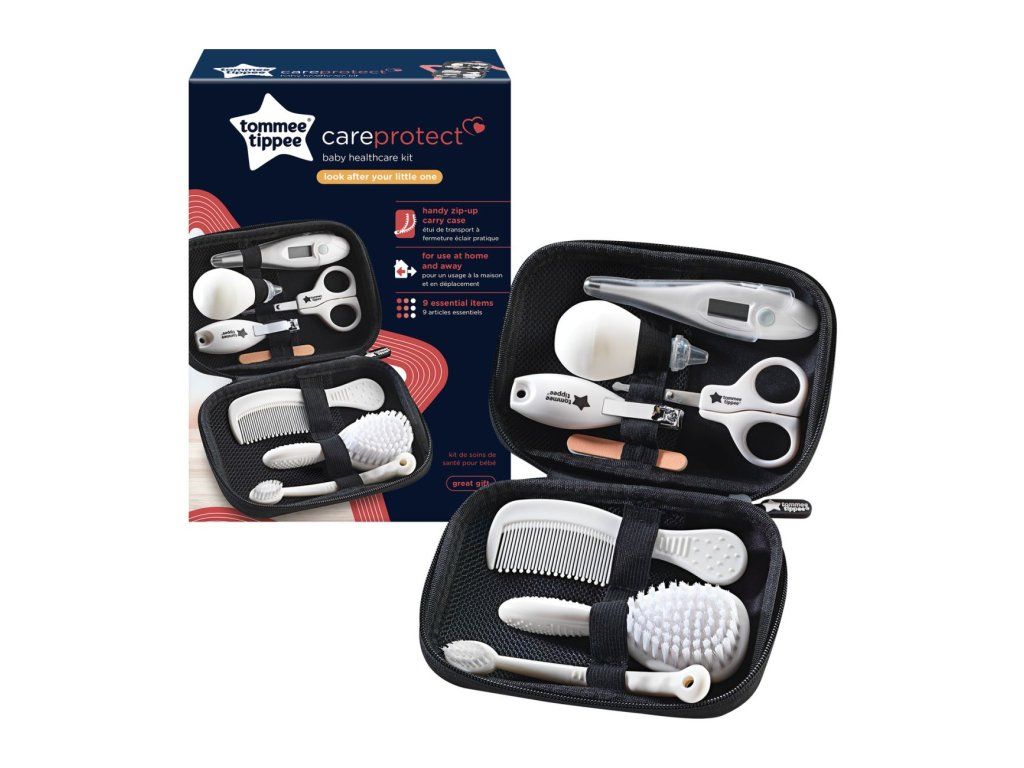 Zdravotnická souprava C2N Tommee Tippee obsahuje 9 základních pomůcek, úhledně uspořádaných v praktické taštičce. Obsah : – digitální ústní teploměr – odsávačka hlenů – zubní kartáček – kartáč – hřeben – nůžky – kleštičky na nehty – 2× pilníček na nehty. Univerzální sada je ideální na doma i na cesty.Parametry dodatkowe